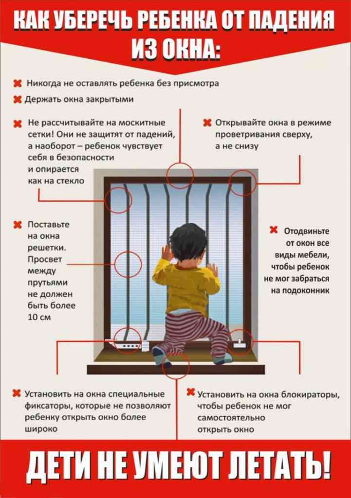 1.Ребенок не может находиться без присмотра в помещении, где открыто настежь окно или есть хоть малейшая вероятность, что ребенок может его самостоятельно открыть.