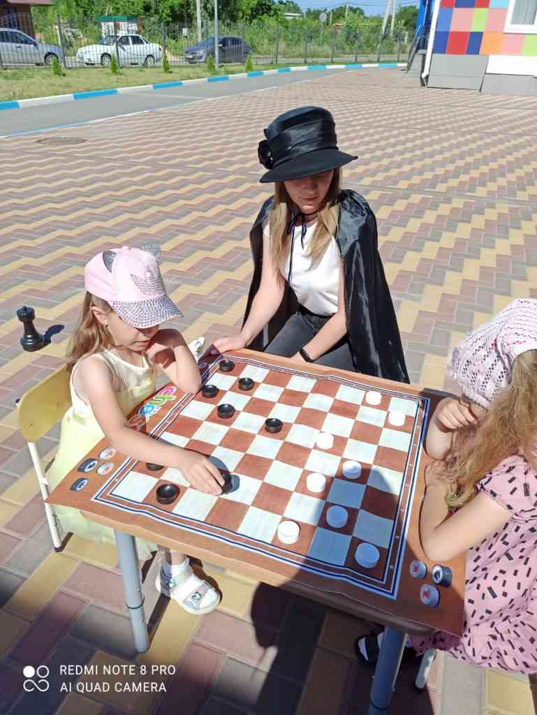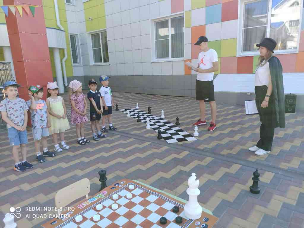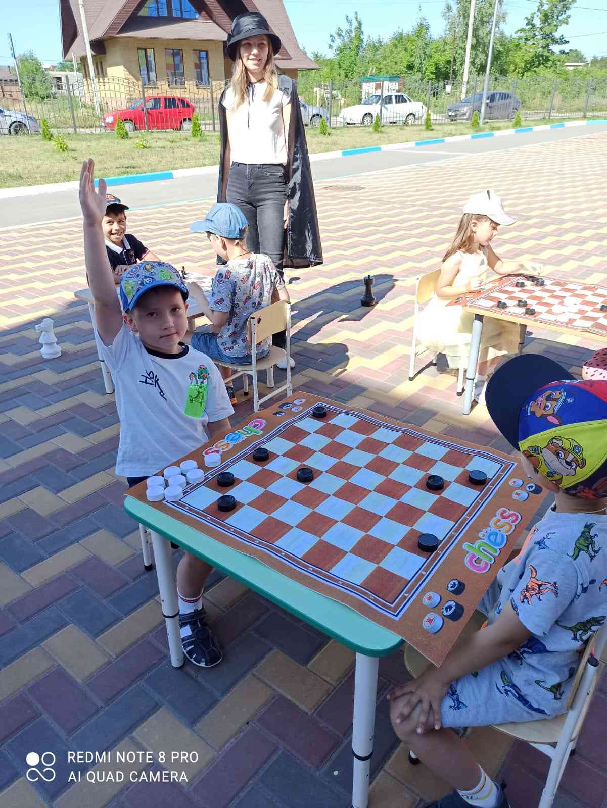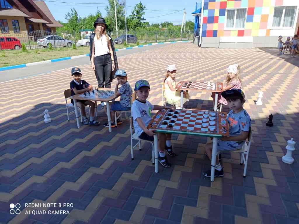 6 июля ,в рамках реализации проекта «Растим чемпионов», в соответствии со спортивным календарем на 2021-2022 учебный год, в нашем детском саду состоялся Чемпионат по шашкам «Отважная дамка». В честном бою на шахматных досках сражались дети старших групп. Для успешного проведения турнира по шашкам педагогами детского сада была проведена предварительная работа, направленная на развитие навыков игры в шашки. Чтобы настроить ребят на позитивную игру, в гости к ребятам пришла Отважная дамка, которая проверила знания детей об игре в шашки. Дети с удовольствием ответили на все вопросы, показывая себя знатоками игры.