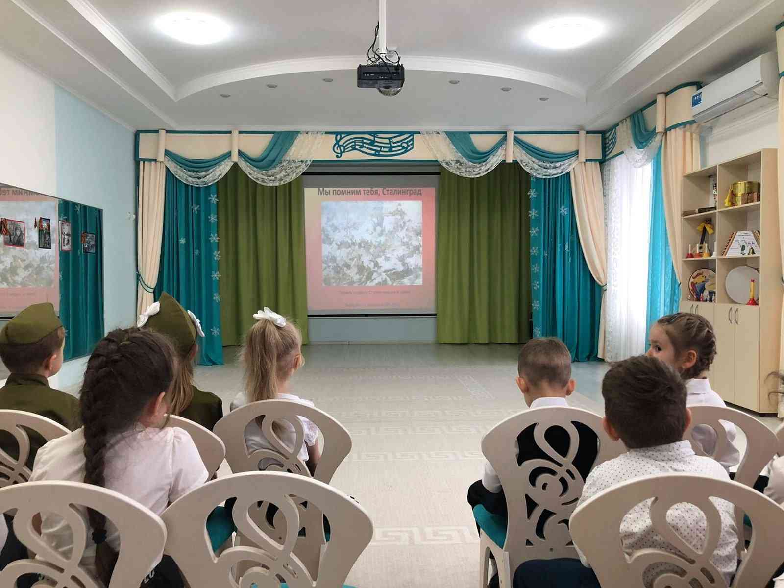 Сегодня музыкальный руководитель Наталья Борисовна провела с воспитанниками старшего дошкольного возраста виртуальную экскурсию «Дорогами Победы. Сталинградская битва». В начале мероприятия ребята узнали об основных событиях и героях Сталинградской битвы. Дети просмотрели небольшой видеоролик о переломных событиях битвы.После просмотра все вместе отправились в виртуальное путешествие по Музею-панораме «Сталинградская битва» и «Мамаеву кургану». Экскурсия была увлекательной. Дошкольники с интересом рассматривали памятники, монументы и экспонаты музея. Больше всего ребятам понравилась смотровая площадка панорамы, где отражены сражения и памятник «Родина-мать зовет!»