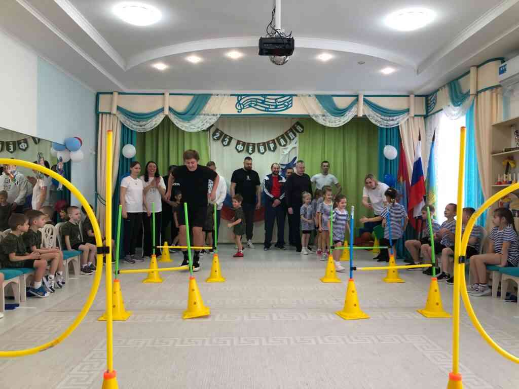 В соревнованиях участвовало 2 команды «Моряки», воспитанники группы № 8 и «Танкисты», воспитанники группы № 12. Капитаны представили команды друг к другу. Дружно, по-солдатски дети сказали название команды и девиз. С самого начала мальчишки и девчонки, а также их папы были настроены на упорную борьбу и показали её в полной мере в ходе прохождения всех этапов. С обручами, мячами участники соревнований управлялись легко! Скорость, быстрота, гибкость были их незаменимыми спутниками. По итогам соревнований победила дружба!