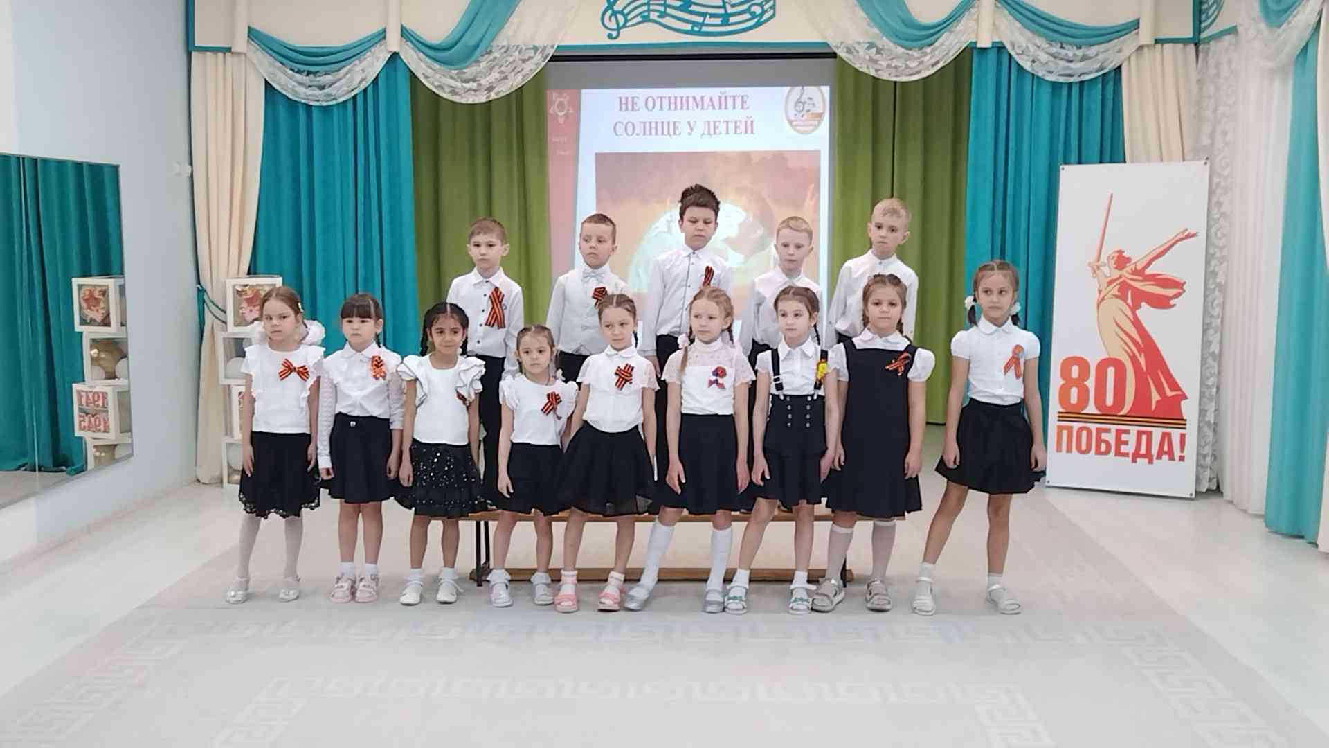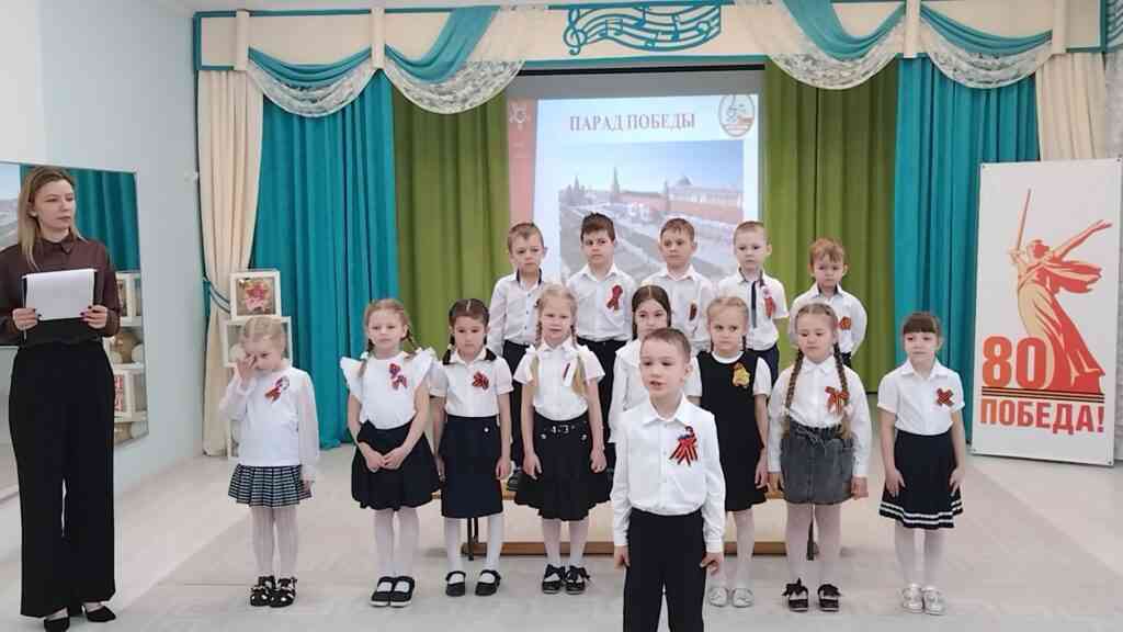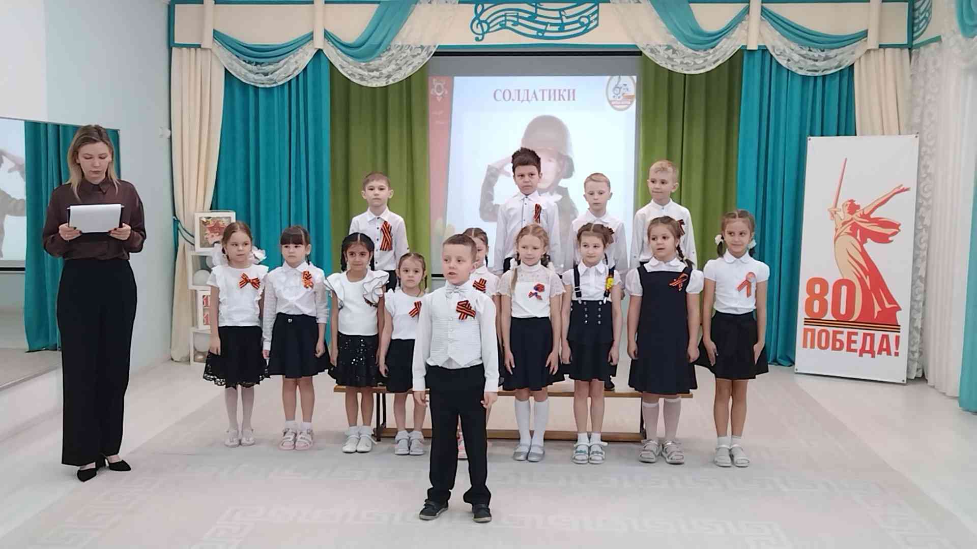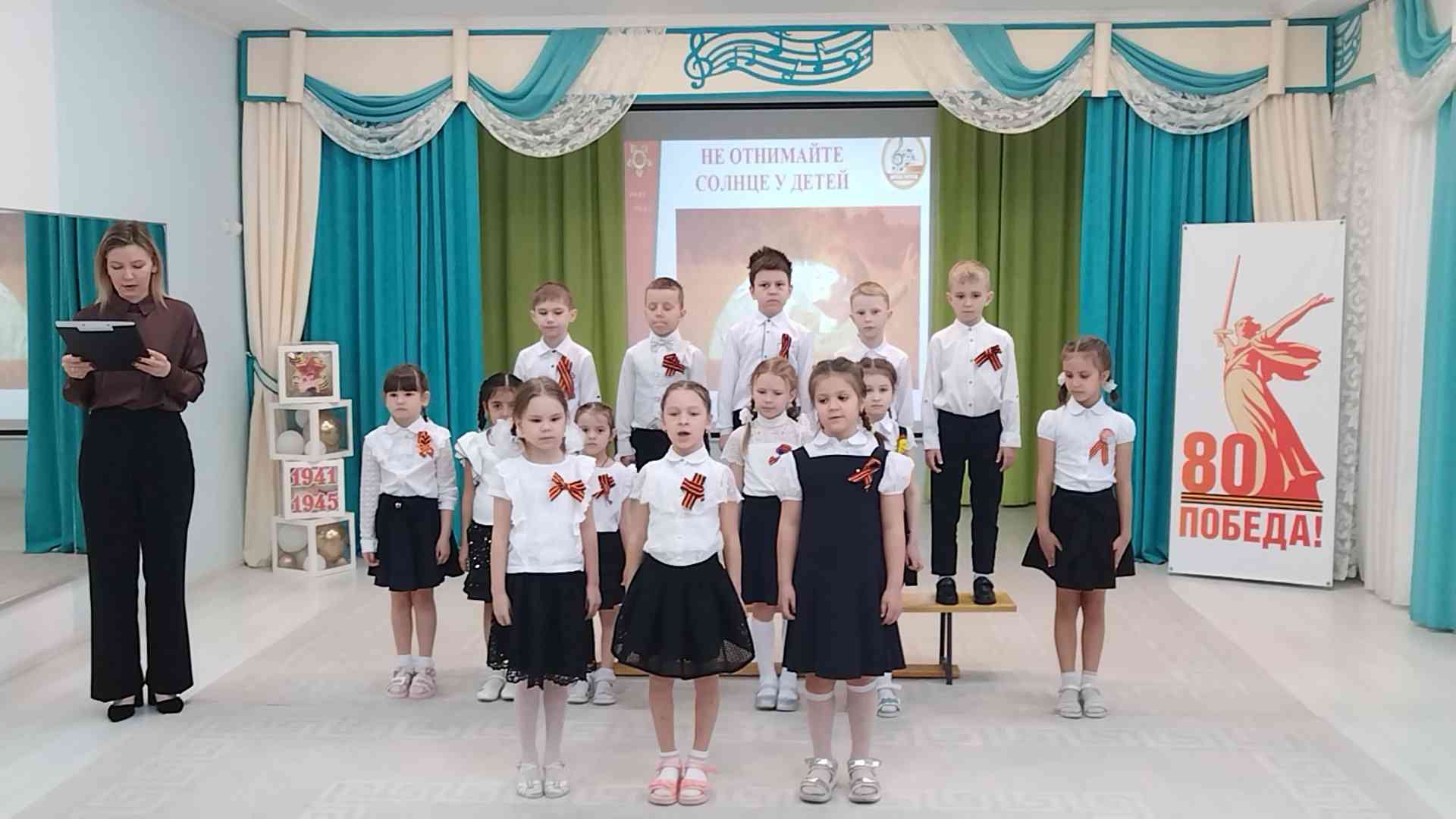 Песни «Пилотка» Ивана Заболотника и «Парад Победы» Людмилы Олиферовой задорно исполнил хор старшей группы №12.