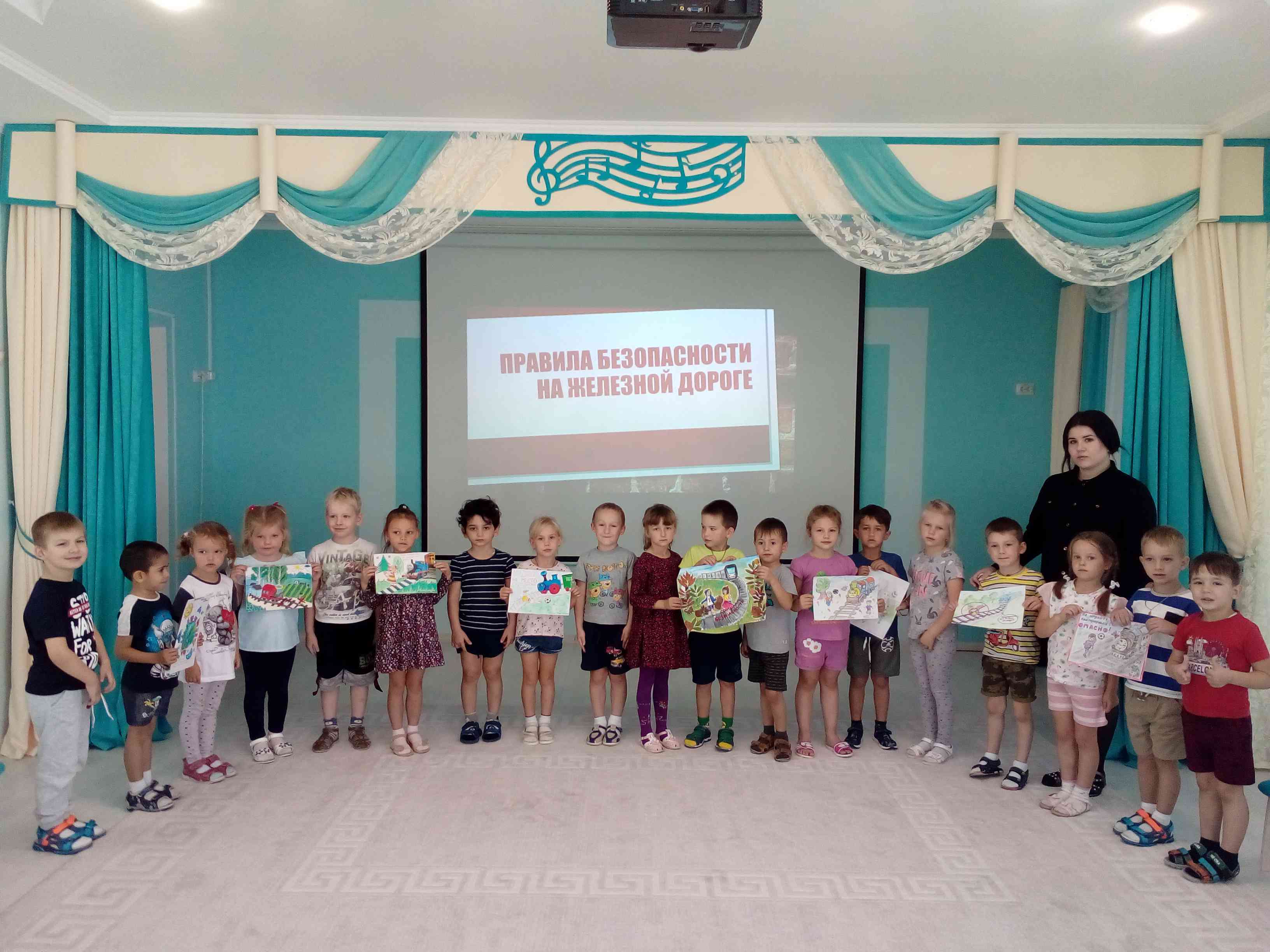 5 октября, в целях реализации комплекса мер по обеспечению безопасности дорожного движения, педагогами старших и подготовительных групп была проведена работа по изучению правил поведения детей на железнодорожном транспорте, Ребята посмотрели обучающий фильм «Дорога без опасности», интерактивную презентацию о безопасности на железнодорожном транспорте, вместе с родителями нарисовали рисунки «Железная дорога не место для игр».