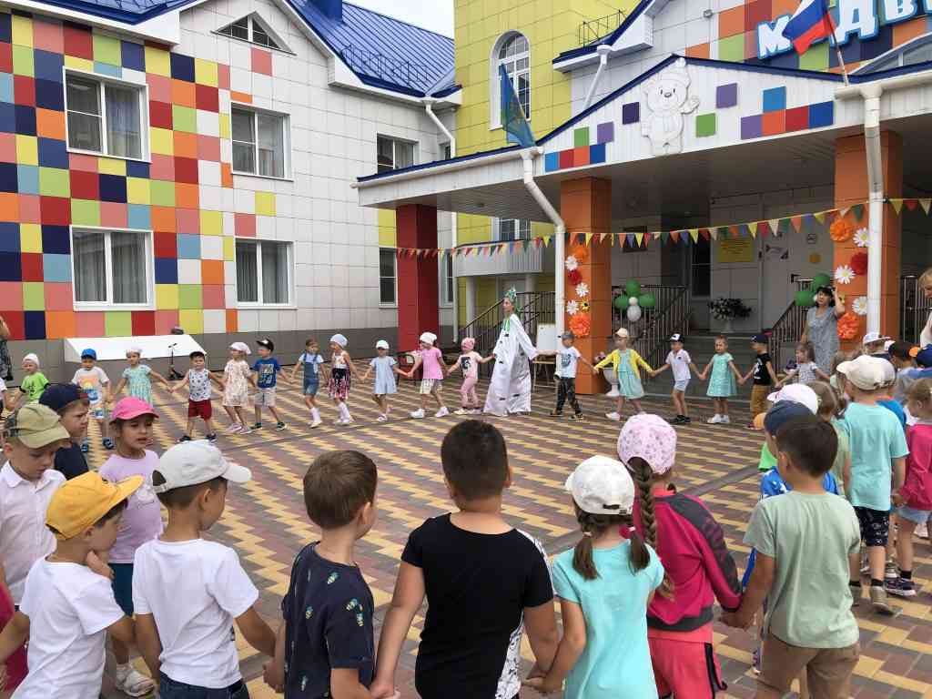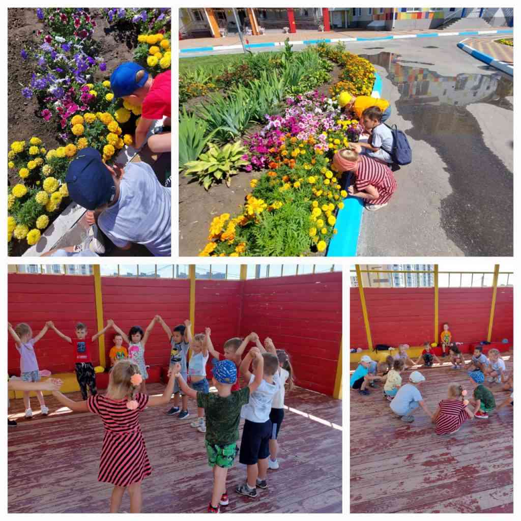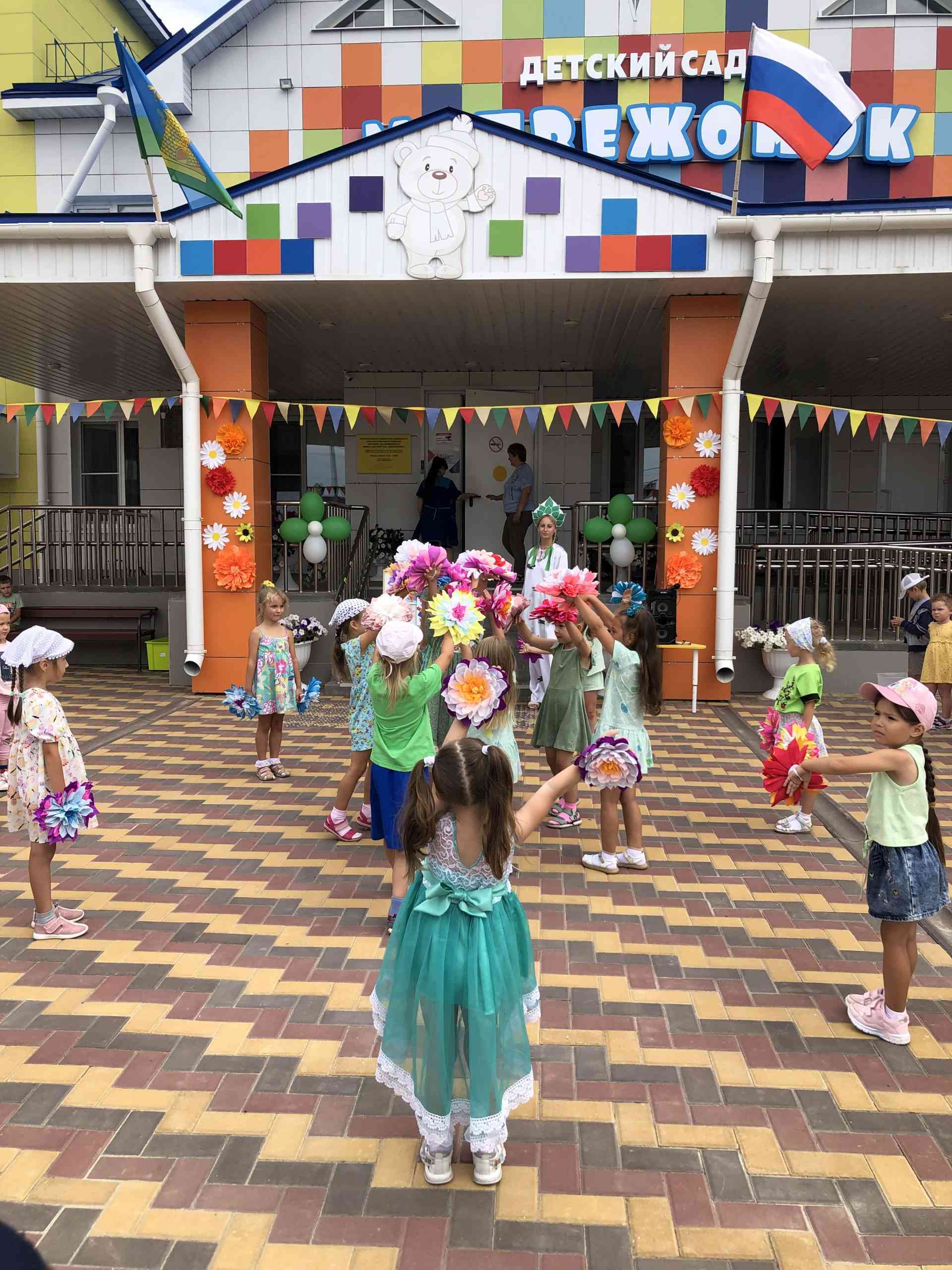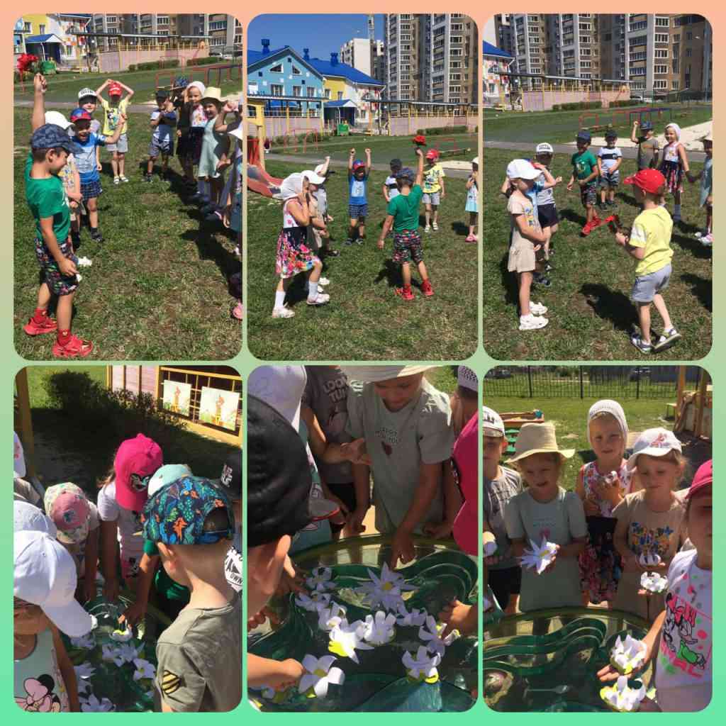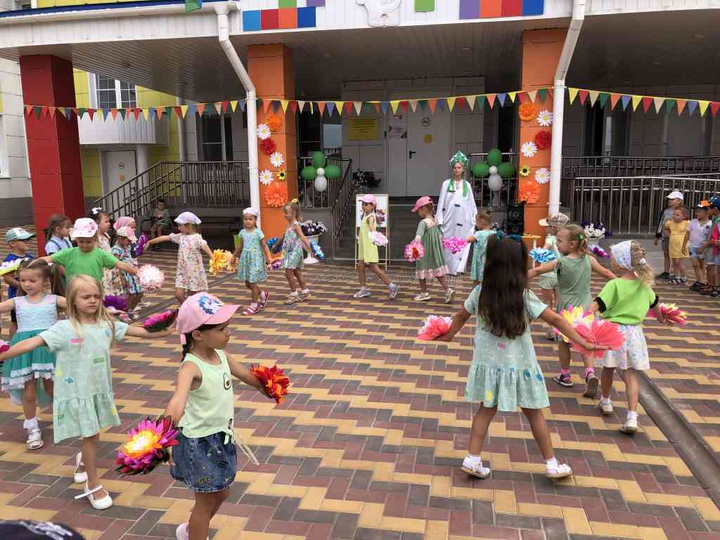 В хороводе танцующие, взявшись за руки и образовав цепь, медленно движутся кругом. Иногда, не расцепляя рук, сходятся к центру образованного круга, затем вновь расходятся. Хороводы могут водить вокруг человека или дерева (в русской культуре — обычно берёзы). Одной из самых популярных хороводных песен до сих пор остается народная песня «Во поле березка стояла». Вот и к нашим ребятам в День Хоровода Мира, 15 августа, пришла в гости Берёзка. Она пригласила сказочных героев из разных стран, которые поиграли с воспитанниками в их народные хороводные игры. Ребята от души повеселились и узнали, что и в других странах водят хороводы и играют в хороводные игры. В конце мероприятия ребята встали в один большой хоровод и станцевали «Танец дружбы». Ну а какое лето без цветов! Педагоги ДОУ водили с детьми цветочные хороводы, а девочки старшей группы исполнили танец «Хоровод цветов».