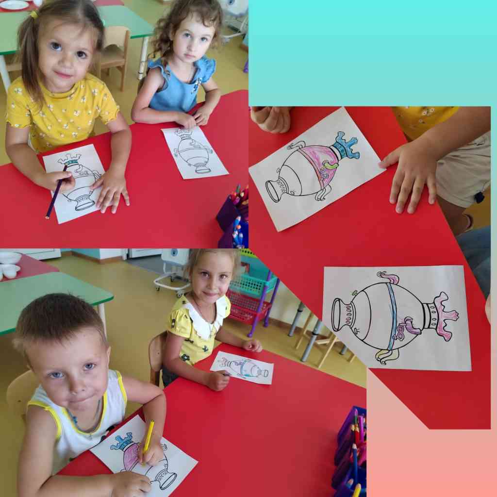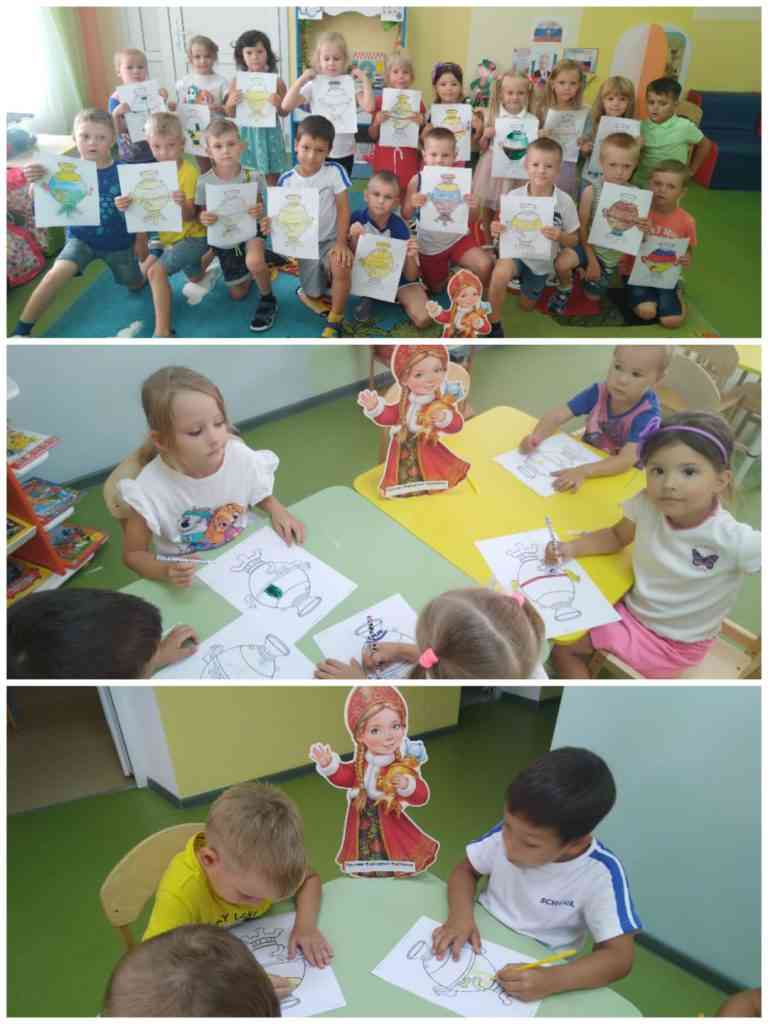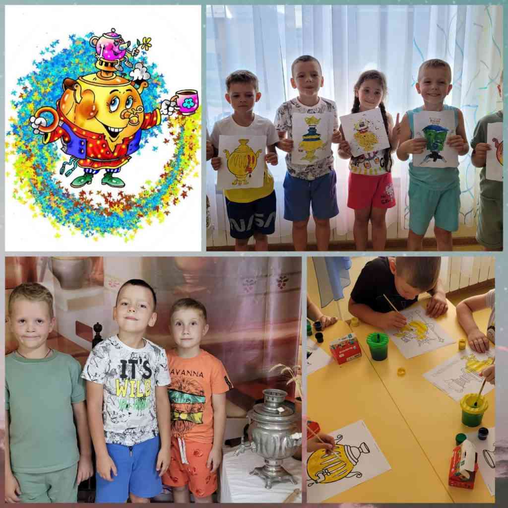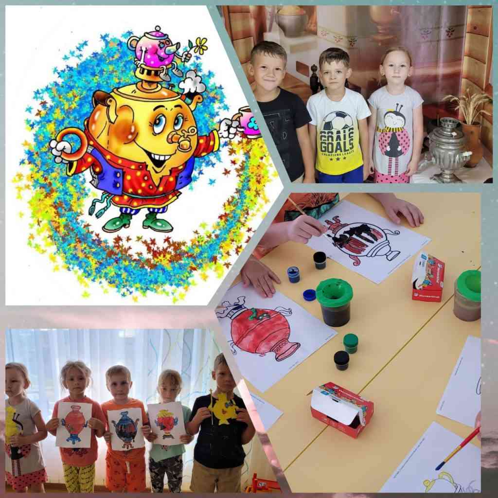 Дети с удовольствием отгадывали загадки по теме праздника, и из каких литературных произведений взяты строки, в которых упоминается о чаепитии. Воспитанники разрисовали эскизы самовара, и они получились на славу.