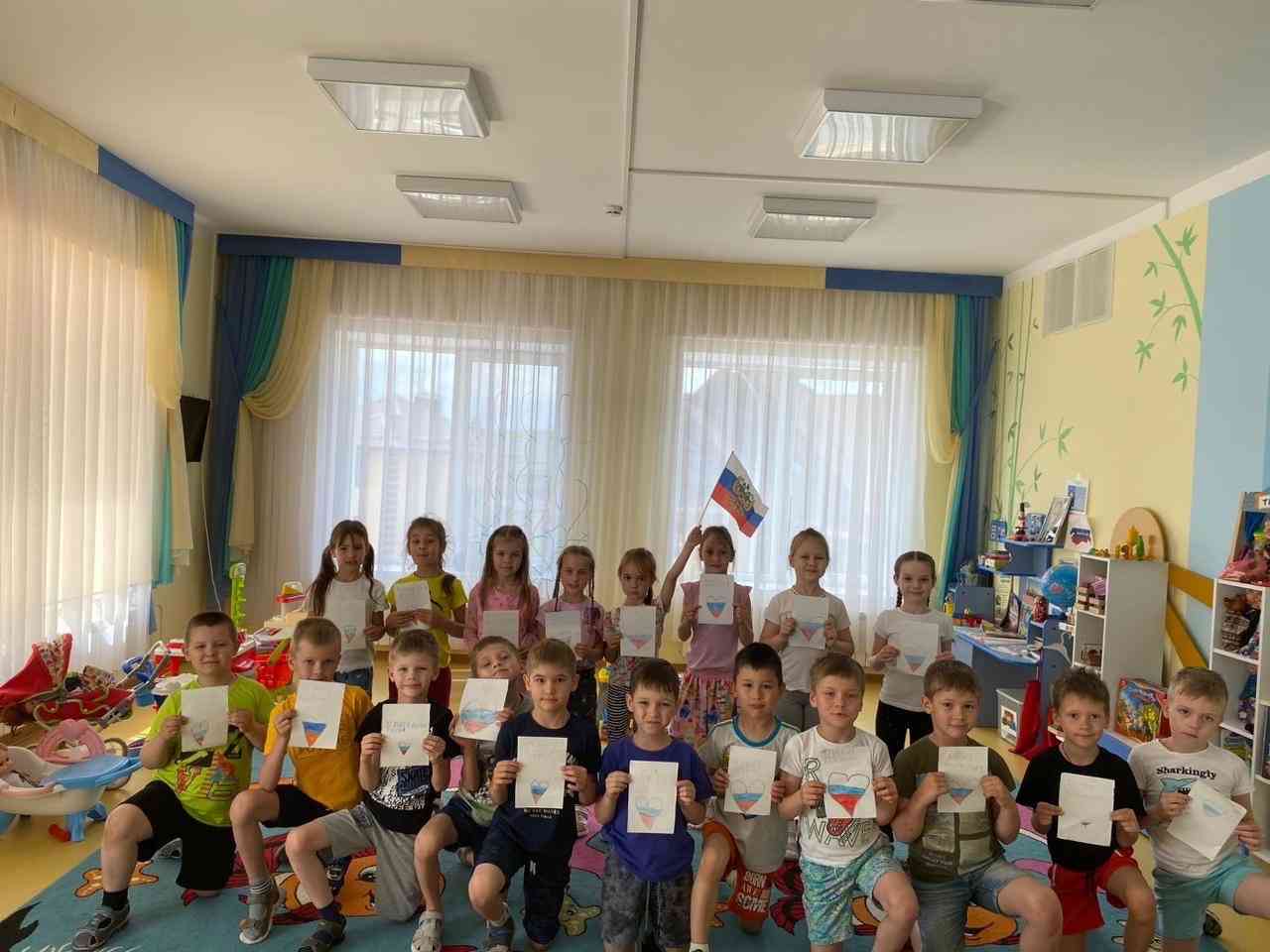 В рамках празднования Дня России педагоги с ребятами читали стихи о символике нашей страны, о Родине, о родном крае и счастливом детстве, исполняли песни, разучили танец, сделали аппликацию «Флаг России», посмотрели презентацию «Россия! Родина моя». Дети усвоили, что День России – праздник свободы, гражданского мира и доброго согласия всех людей. Этот праздник – символ национального единства и общей ответственности за настоящее и будущее нашей Родины.