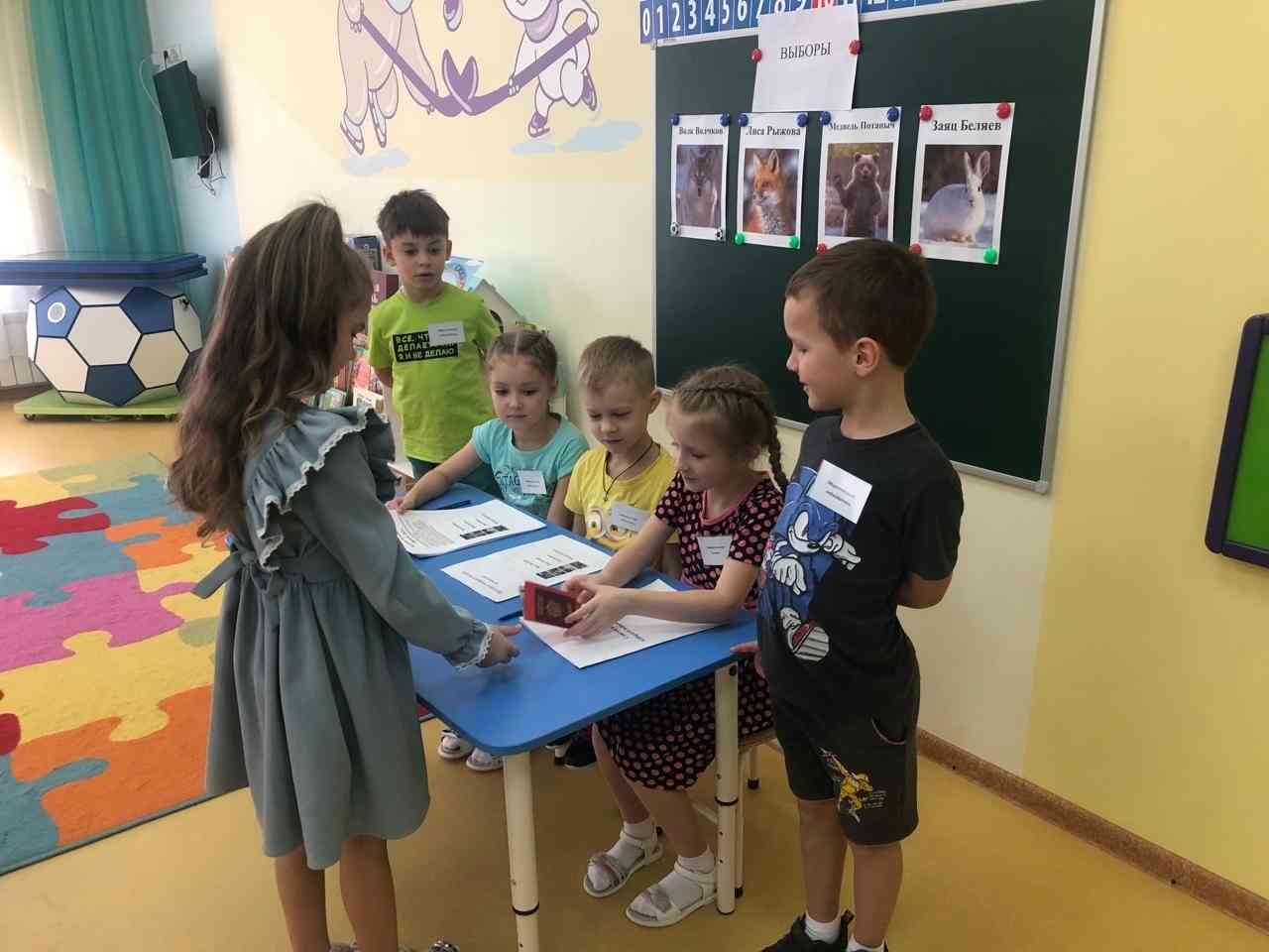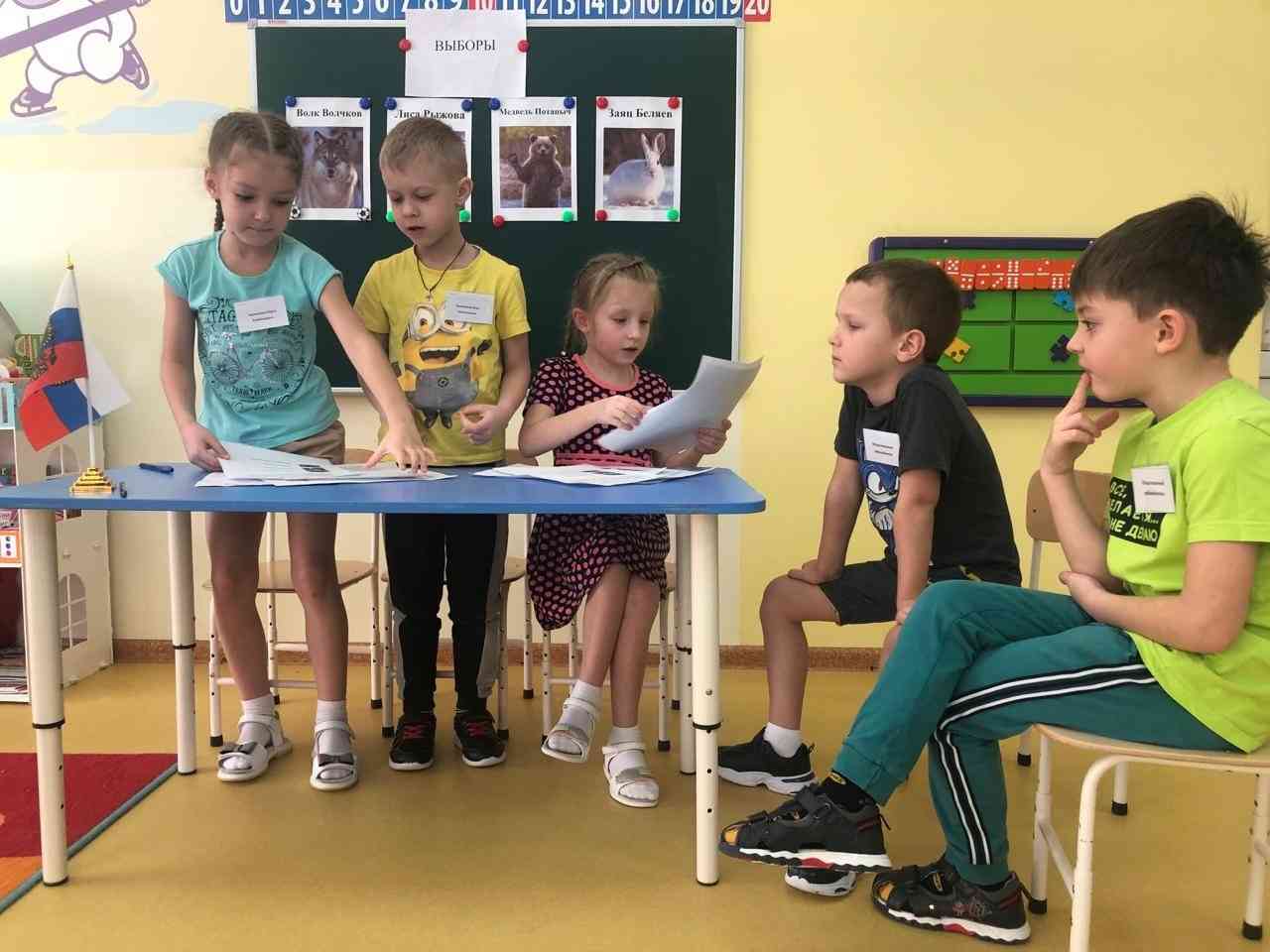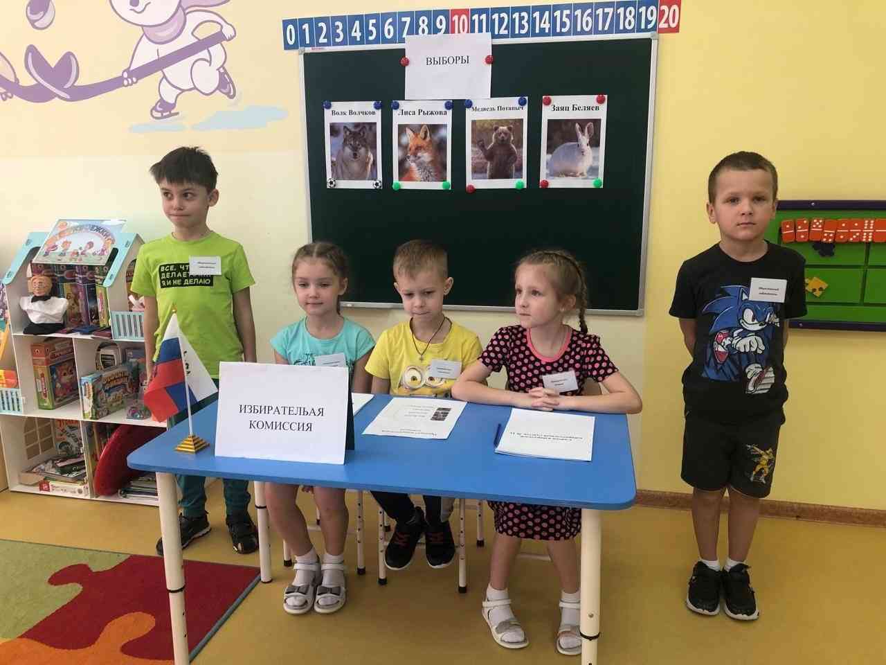 Воспитатели поставили следующие задачи: обобщить знания детей о гражданских правах и обязанностях; закрепить знания о праве выбирать и быть избранным. С детьми была проведена большая предварительная работа: чтение художественной литературы, проведены беседы и обсуждения: кто такой Президент, какими качествами он должен обладать. Ребята многое узнали о выборах — кто такой кандидат, избиратель, об избирательных действиях, работе избирательных комиссий, важности каждого голоса, ответственности за свой выбор. К этому ответственному мероприятию воспитанники готовились тщательно и серьезно. Познавательная игра прошла очень увлекательно. Ребятам выдали паспорта, подготовили списки избирателей, бюллетени для голосования. На выборах, как и полагается, присутствовали корреспондент, наблюдатели. Была создана избирательная комиссия. Групповая комната была оформлена в виде избирательного участка. Перед ребятами предстали кандидаты в Президенты, жители леса: Медведь Потапыч, Волк Волчков, Лиса Рыжова, Заяц Беляев. Ребятам предстоял нелегкий выбор. Подходя к членам избирательной комиссии, они предъявляли паспорта, расписывались в списке избирателей, получали бюллетени, думали, голосовали в кабинке для голосования, опускали бюллетень в урну. Результат блестящий! Недействительных бюллетеней не обнаружено, все были заполнены правильно. Наибольшее количество голосов набрал самый достойный кандидат — Медведь Потапыч. Таким образом, ребята познакомились с процедурой демократических выборов через реальное участие в них.