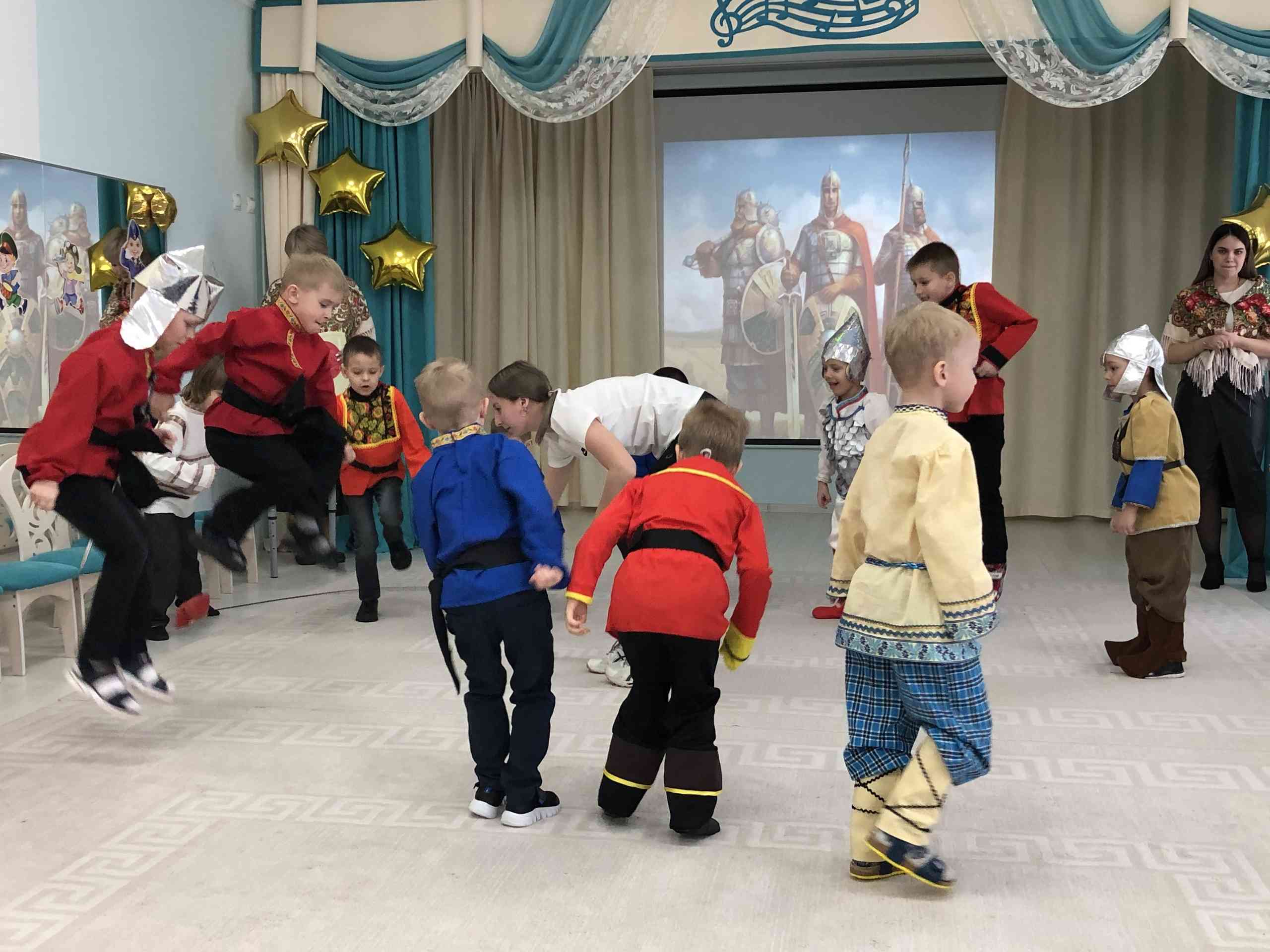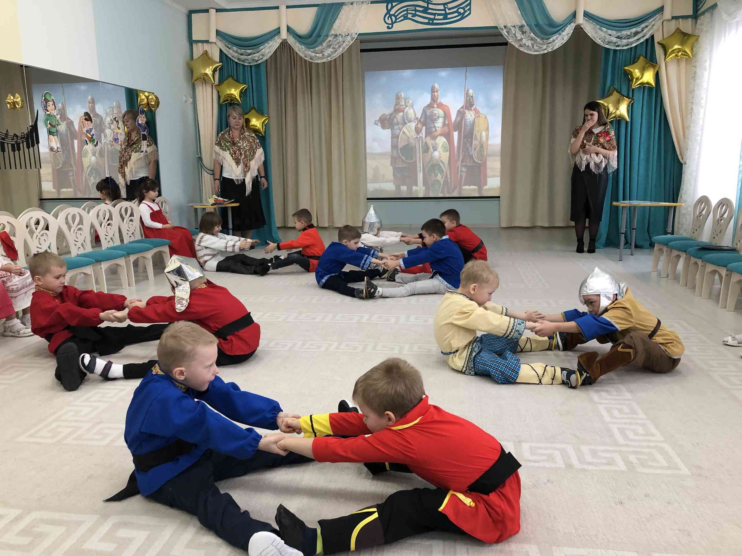 «Собирайтесь вы, люди добрые, на состязания богатырские, чтобы тут удаль свою показать и силы, в молодецких играх поучаствовать» — таким словами начались шуточные веселые состязания богатырей в нашем детском саду для ребят группы № 11. Дошколята окунулись в прошлое и вспомнили обычаи и традиции, существовавшие на Руси. Воевода отбирал богатырей в дружину, чтобы отправиться на поиски Василисы Прекрасной, которую удерживал хитрый Соловей-разбойник. Юные богатыри, вместе с папами, показали свою удаль в скачках на «богатырских » конях, строили мост через речку Смородину.