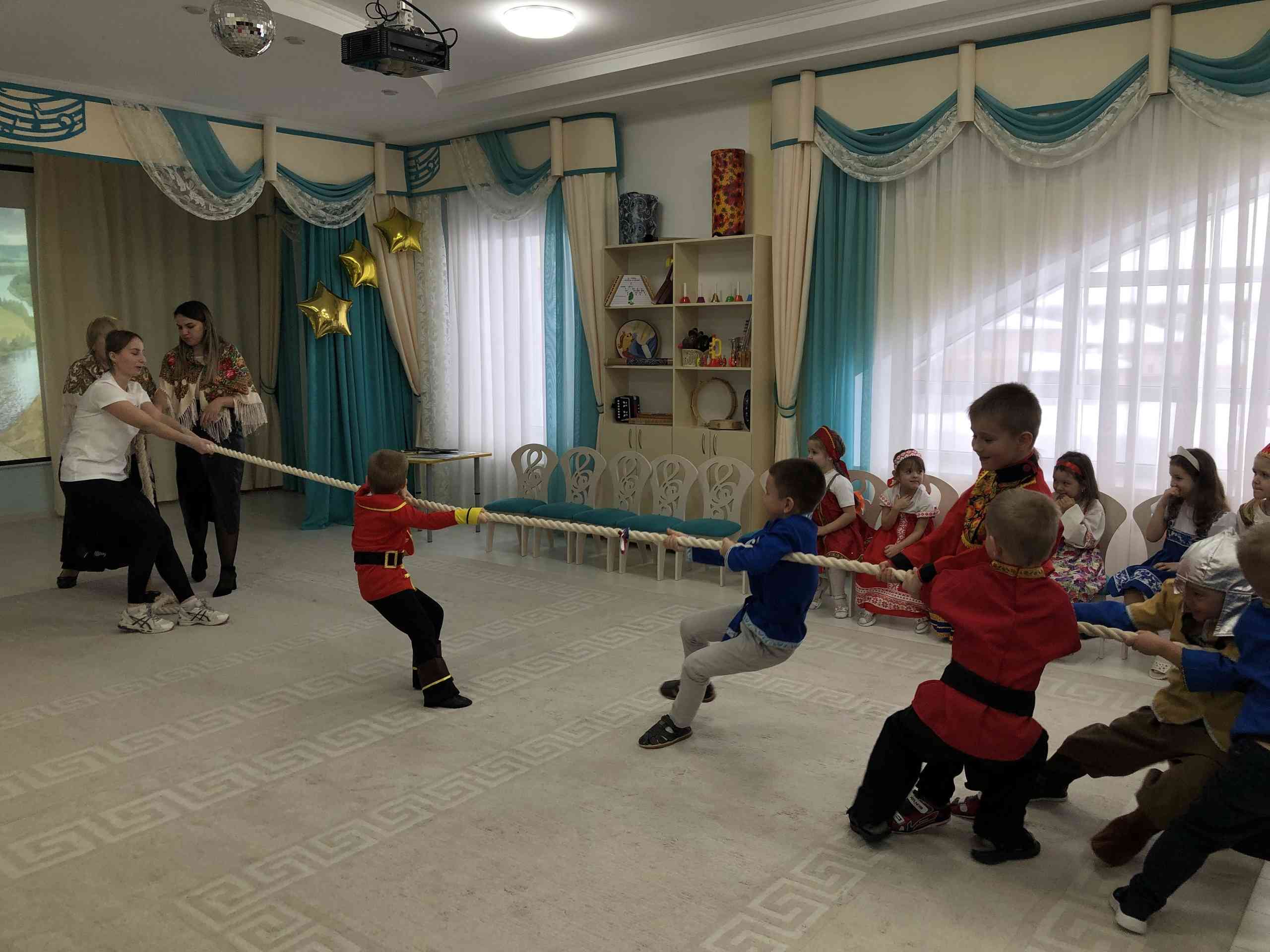Померившись силушкой своей и победив Соловья — разбойника в перетягивании каната, наши богатыри освободили Василису Прекрасную, а русские красавицы исполнили для богатырей задорные частушки!