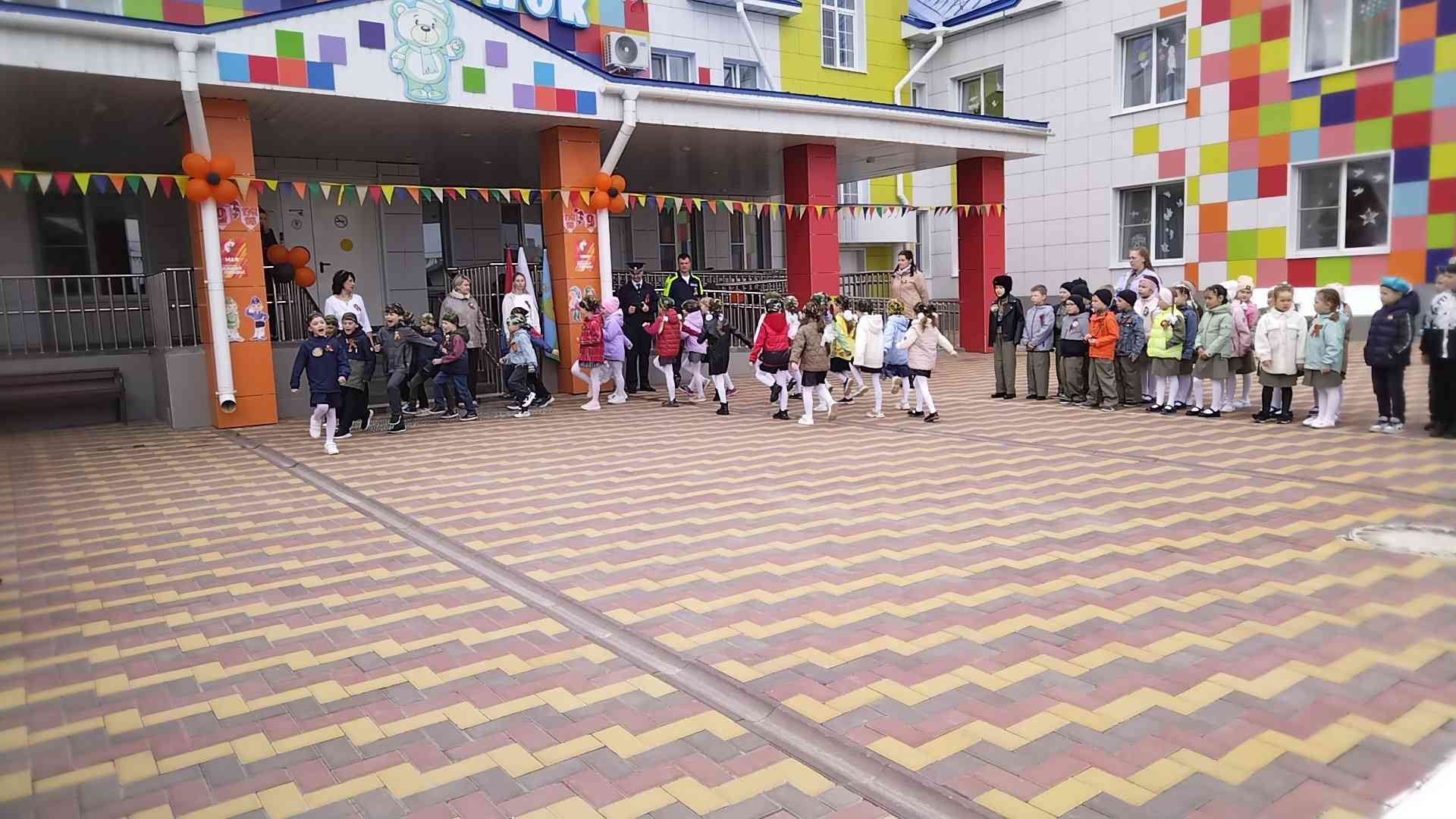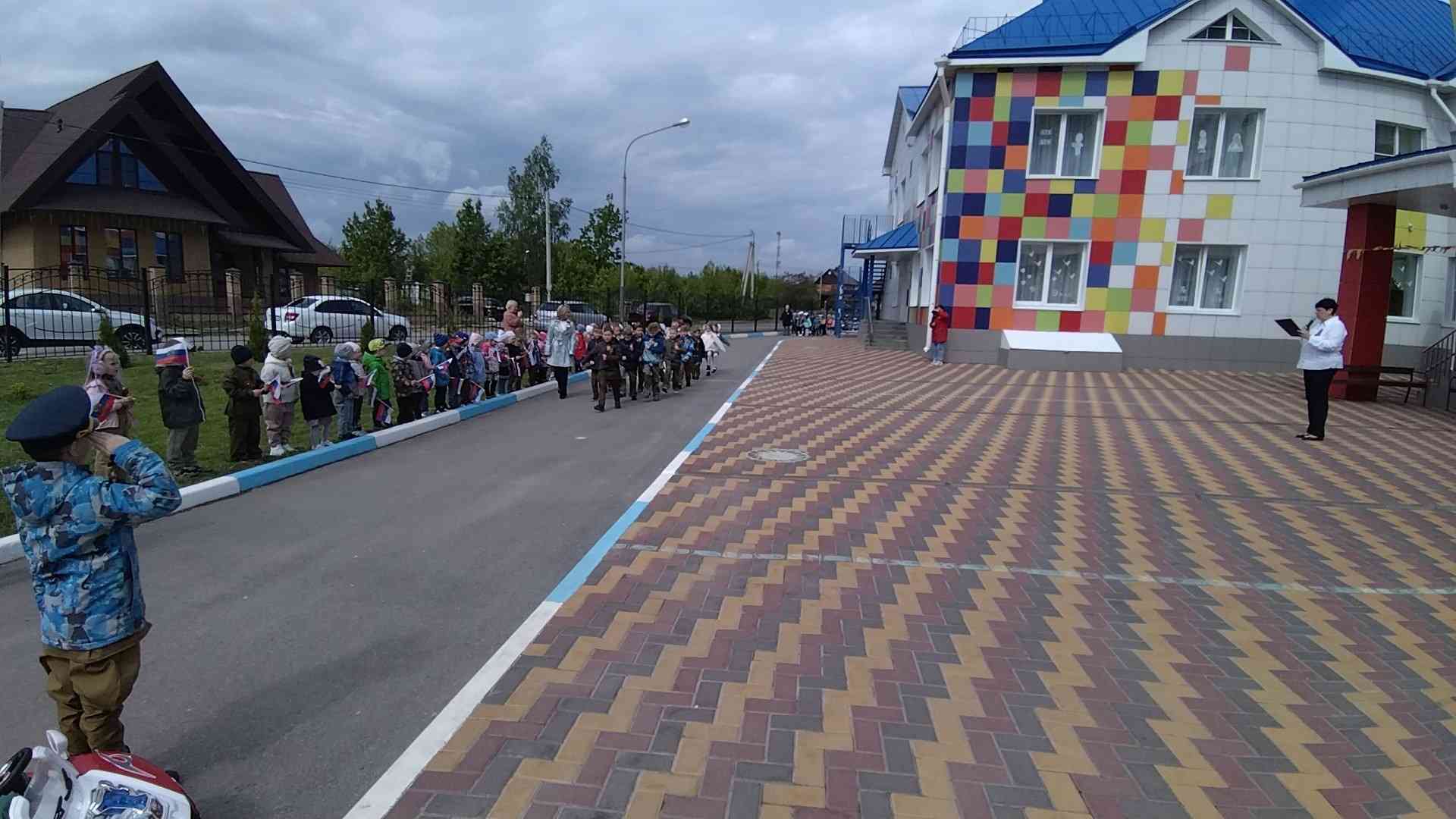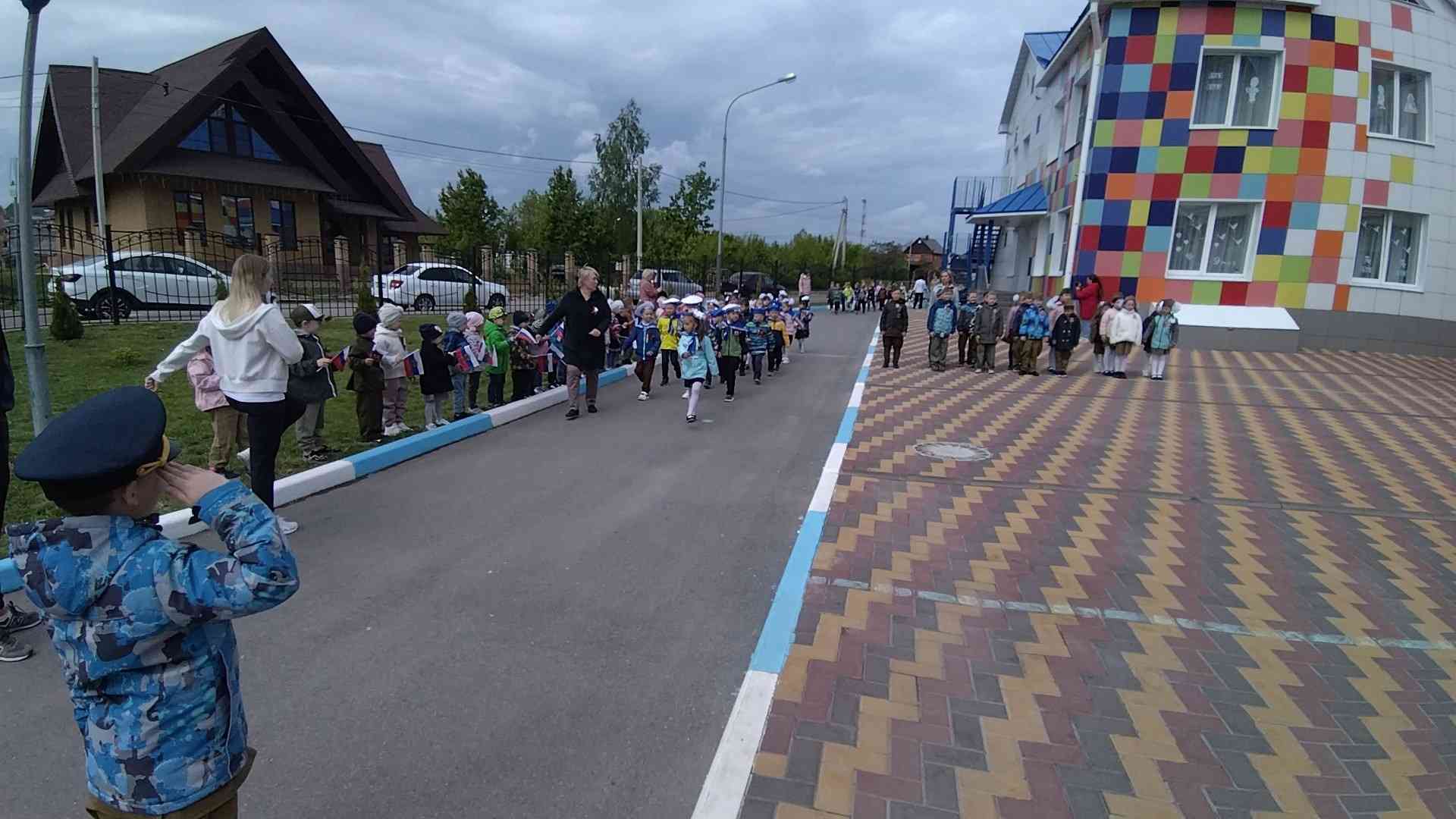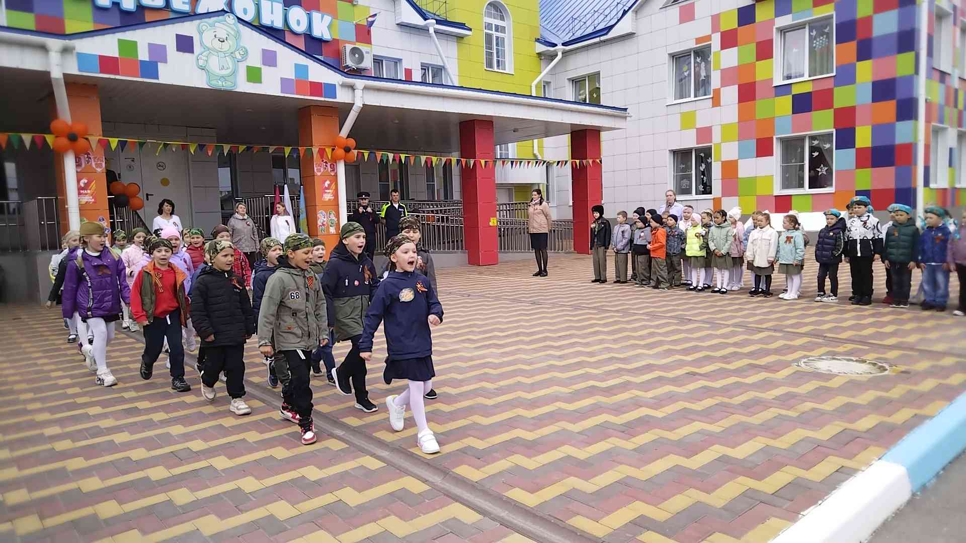 Участниками Парада стали воспитанники 5-7 лет. Колонны пограничников, моряков, танкистов, десантников, артиллеристов, ракетчиков под торжественную музыку, стройными рядами, чеканя шаг, показав свою выправку, прошли мимо гостей: взрослых и малышей. Торжественно и красиво прошел Парад дошколят, открывая смотр стоя и песни. Всё было по-настоящему: выполнение команд направо, налево, построение в 2 и 3 колонны и исполнение строевой песни. Ребята уверенно, важно выполняли все команды, а их командиры бойко отдавали приказы и сдавали рапорт.