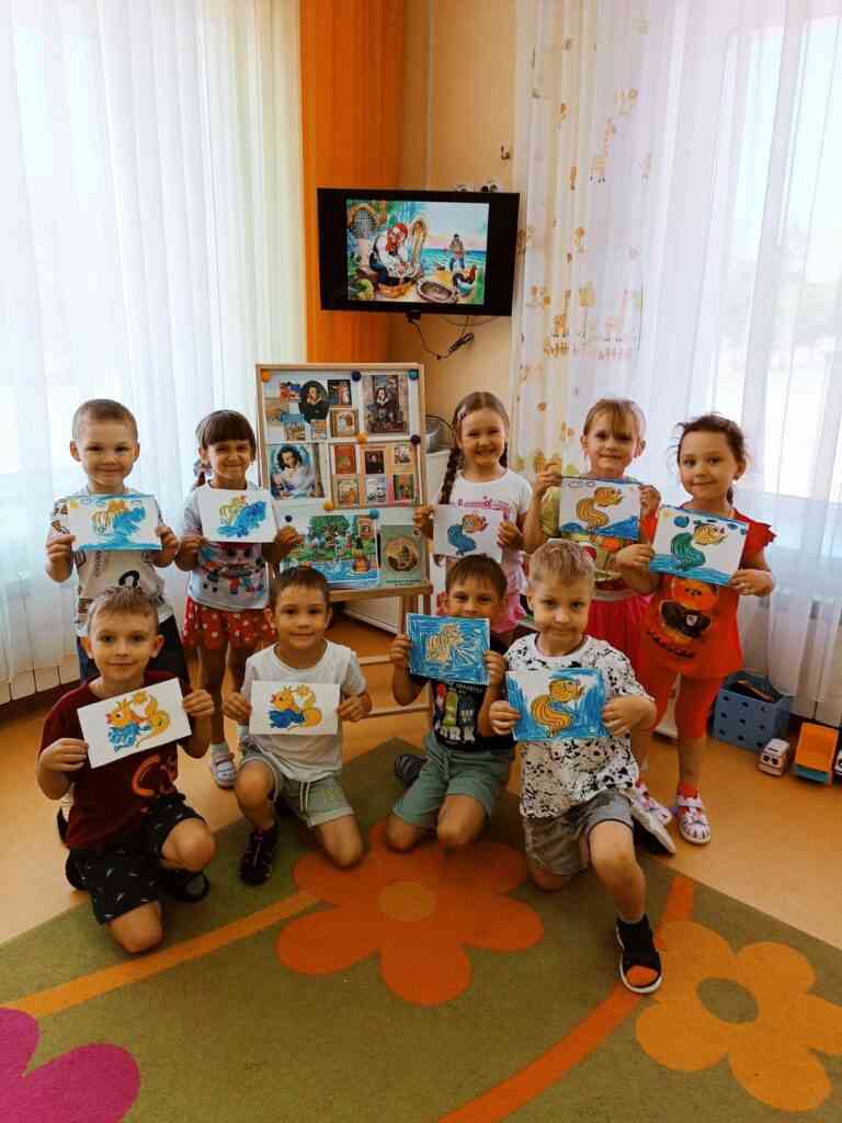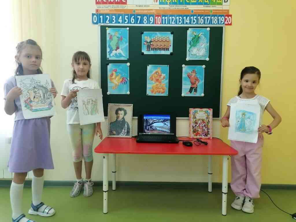 Каждый год 6 июня, в день рождения великого поэта, в России отмечается Пушкинский день. Сегодня в нашем детском саду прошли мероприятия, посвященные Дню русского языка. День А.С. Пушкина начался с выставки книг великого русского поэта. Любимые сказки, которые не раз уже слушали дети, и многие строчки из которых помнили наизусть, звучали в этот день по-особенному: «Сказка о царе Салтане…», «Сказка о рыбаке и рыбке», «Сказка о золотом петушке» — произведения, на которых выросли десятки поколений россиян, вновь открывали перед нашими воспитанниками неизведанные дали далеких стран, морей и островов. В подготовительных группах была проведена виртуальная экскурсия «Тамбовская тропинка к Пушкину», на которой ребята познакомились с историческим прошлым семей Пушкина, связанных с Тамбовским краем. Как хорошо дошколята знают сказки А.С.Пушкина было проверено в ходе литературной викторины»Что за прелесть эти сказки!». Дошкольники слушали сказки и смотрели их мультипликационную версию в кинотеатрах, организованных педагогами, рисовали по ним иллюстрации. А малыши , загадав желания, выполняли творческие работы в различных техниках, изображая Золотую рыбку.