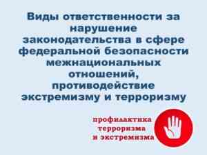 Памятка «Виды ответственности за нарушение законодательства в сфере федеральной безопасности, межнациональных отношений, противодействия экстремизму и терроризму»